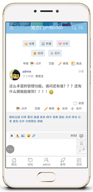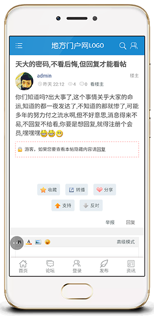 特殊是因为不普通,在自适应的世界里,他乡的盖世英雄也会折腰,没有什么不可能,你有我就有,我有,你未必能有...商品贴,投票贴,辩论帖,活动帖,悬赏贴,密码帖,收费贴,权限贴,权限或者密码版块,抢楼贴,回复可见贴,分页帖子,目录帖子,付费贴,视频贴,音乐帖子....功能众多,无法一一列举,此处只是抛砖引玉,更多功能购买后自行体验吧....