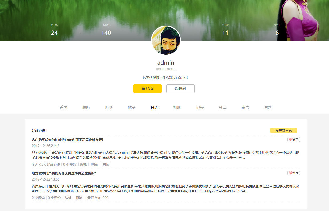 个人空间和群组一样,在网站成熟期是一个非常重要的角色,是用户的私家园林,无比重要,想要留住用户,让其将网站视为己出,没有家园是万万不行的....